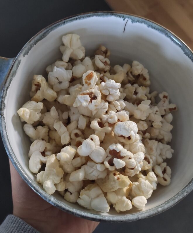 Beim letzten Filmeabend zu Hause hatten wir große Lust auf Popkorn. Wir haben es mit einer zuckerfreien Variante probiert, die sehr lecker geschmeckt hat.